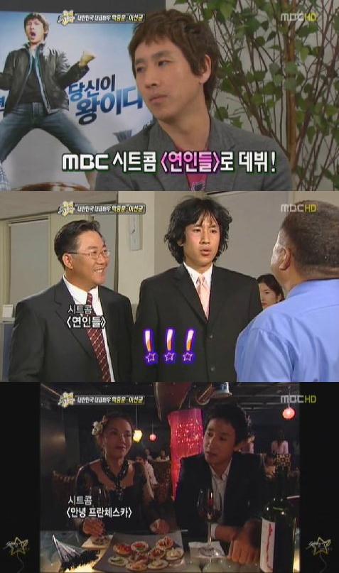 ์กธ์ ํ ํ ํ๋์ ๋ฐฑ์ ์ํ์ ํ๋ค๊ฐ 2001๋ MBC ์ํธ์ฝค "์ฐ์ธ๋ค"์์ ์ด์ค์ฑ์ ๋จ๋์ ๋ฐฐ์ญ์ผ๋ก TV ๋ฌด๋์ ์ฒซ ๋ฐ๋ทํ์๋ค. ์ด ๋จ๋์ ์ญํ ์ด ๊ทน์ค ๋ฐฑ์ ์ ๋ถ์ด์๋๋ฐ, ๋๋ ์น๊ตฌ๋ค์๊ฒ๋ ๋งค์ฌ์ ๋์น๊ฐ ์๊ณ ๋ง๋ง์ ํ๊ฑฐ๋ ๋๋์ ๋์ ํ์งํ๊ธฐ๋ ํ๋ ์ฌ๊ณ ๋ญ์น์ค๋ฌ์ด ํ๋์ ํ๋ ํธ๋ฌ๋ธ ๋ฉ์ด์ปค๋ก ์ง์์ค๋ฌ์ด ๋ชจ์ต์ ๋ณด์ฌ์ฃผ๋ ์ฝ๋ฏน ์ฐ๊ธฐ๋ฅผ ๋ณด์ฌ์ฃผ๋ฉด์ ์จ๊ฒจ์ง ์ ์คํธ๋ฌ๋ก ์ฃผ๋ชฉ์ ๋ฐ์๋ค.