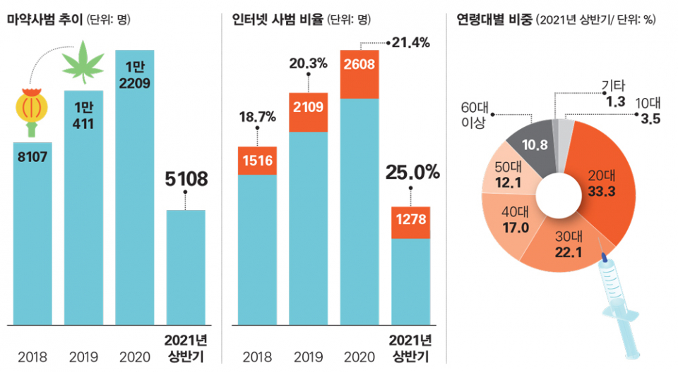 λ²μ μΌλ‘λ λ§μ½λ₯ κ΄λ¦¬μ κ΄ν λ²λ₯ μ 2μ‘°μμ μ νλ λ§μ½·ν₯μ μ μ±μμ½ν λ° λλ§μ λν΄ λλ²μμ κΈμ§ν λ°©λ²μΌλ‘ ν¬μ½·μμ§·μμ ·μ μ‘°·μμΆμ ·λ§€λ§€·λ§€λ§€μ μμ λλ μμ·μλ£μ μ¬λ°° λ° μμ§ νμ λ±μ νμ¬ λ²μμμ μ μ£λ₯Ό μ κ³ λ°μ λ²μ£μλ₯Ό λ§νλ€.