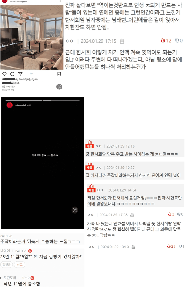 ์ฐ์์ธ๋ ์๋ ๋ง์ฝ์ฌ๋ฒ์ ํ ํ๋ก ์ถ์ ์ธ ํ์ํฌ์ ๋ ๊ด์ข ์ฌ๊ฑด์ด ํฐ์ก๋ค. ํ์ํฌ๊ฐ ๋ฐฐ์ฐ ์ํจ์ญ์๊ฒ '๊ด๊ณ'๋ฅผ ์ ์ํ๋ ์นดํก ๋ด์ฉ์ด ์ ์ถ๋ผ ๋ ผ๋์ด ๋๊ณ ์๋ค. ํ์ํฌ๋ "์๋ ์นใ ํ๋์ง" ๋ผ๋ฉฐ ๋ ผ๋์ด ๋๋ ๋ฐ์ธ์ ํ๊ณ ์ปค๋ฎค๋ํฐ์์ ์ผํ๋งํ ์ปค์ง๊ณ ์๋ค.