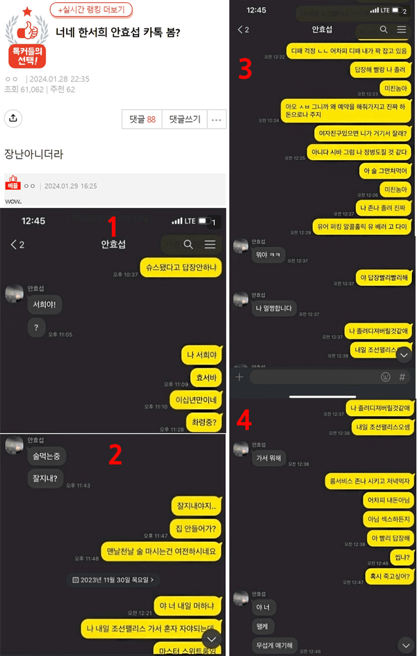 ์ฐ์์ธ๋ ์๋ ๋ง์ฝ์ฌ๋ฒ์ ํ ํ๋ก ์ถ์ ์ธ ํ์ํฌ์ ๋ ๊ด์ข ์ฌ๊ฑด์ด ํฐ์ก๋ค. ํ์ํฌ๊ฐ ๋ฐฐ์ฐ ์ํจ์ญ์๊ฒ '๊ด๊ณ'๋ฅผ ์ ์ํ๋ ์นดํก ๋ด์ฉ์ด ์ ์ถ๋ผ ๋ ผ๋์ด ๋๊ณ ์๋ค. ํ์ํฌ๋ "์๋ ์นใ ํ๋์ง" ๋ผ๋ฉฐ ๋ ผ๋์ด ๋๋ ๋ฐ์ธ์ ํ๊ณ ์ปค๋ฎค๋ํฐ์์ ์ผํ๋งํ ์ปค์ง๊ณ ์๋ค.