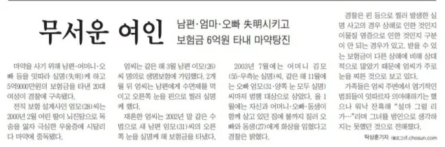 ์—„ ์—ฌ์ธ ๋ณดํ—˜ ์‚ด์ธ์‚ฌ๊ฑด